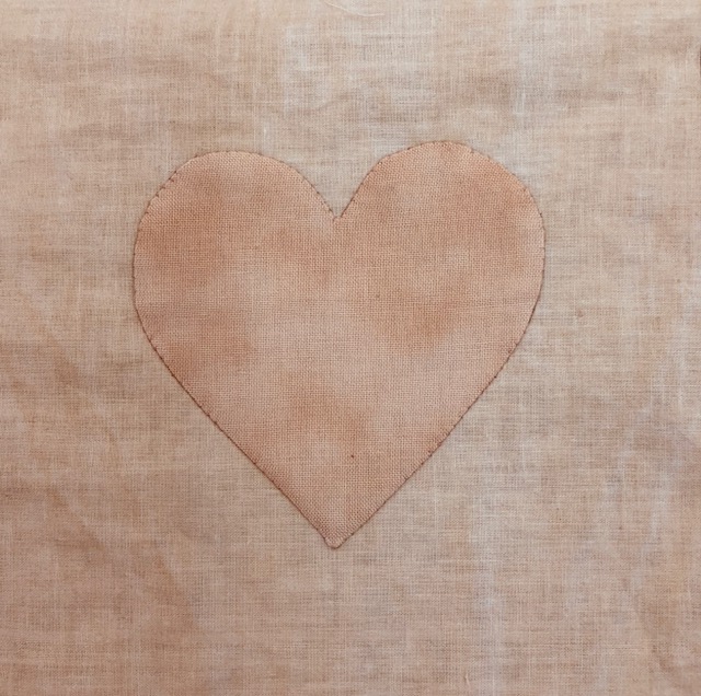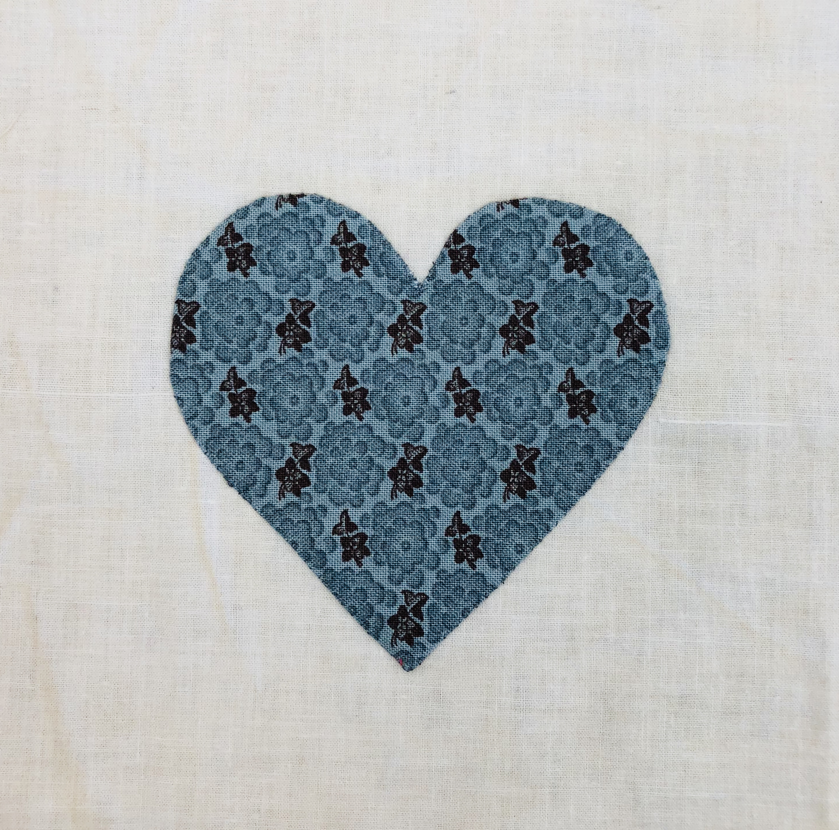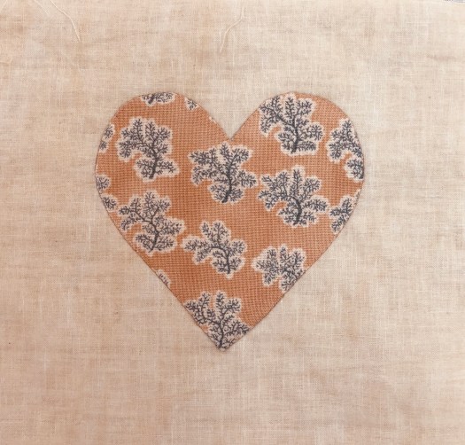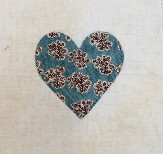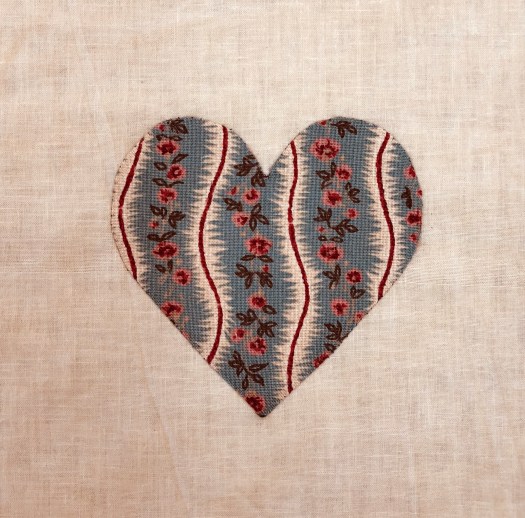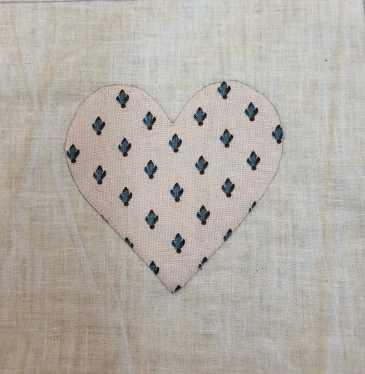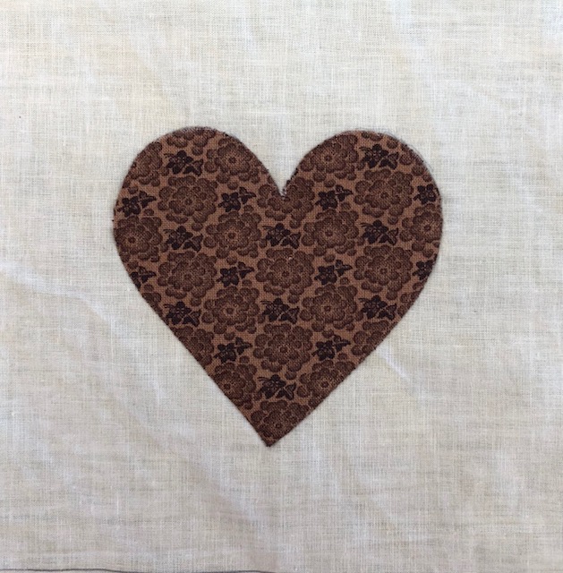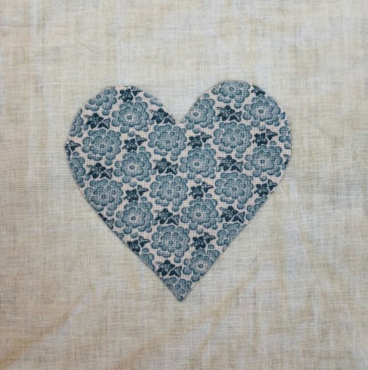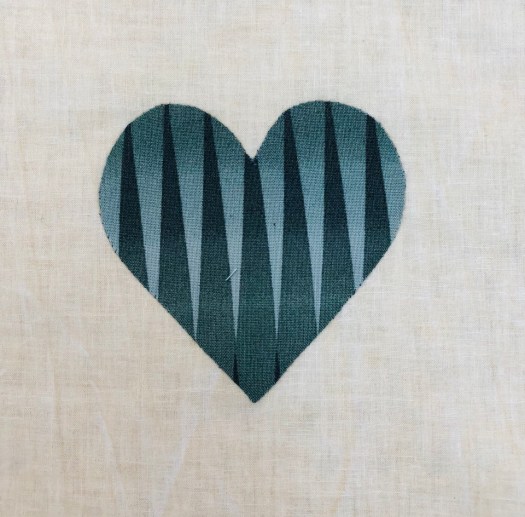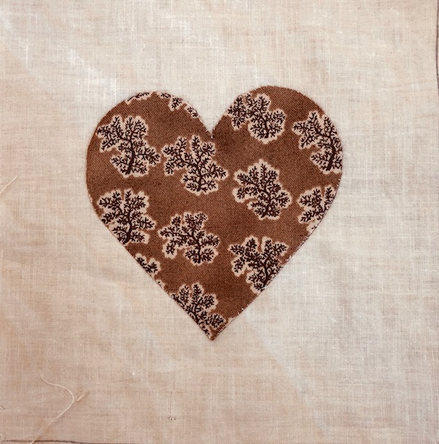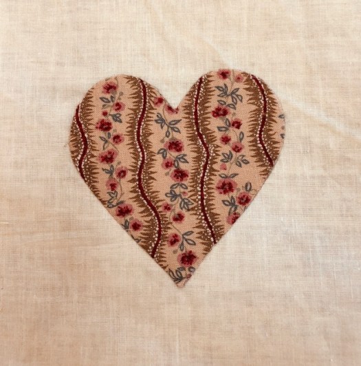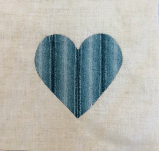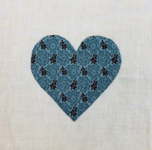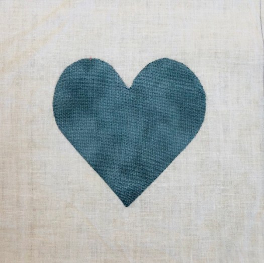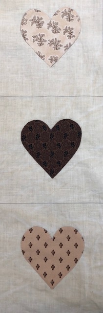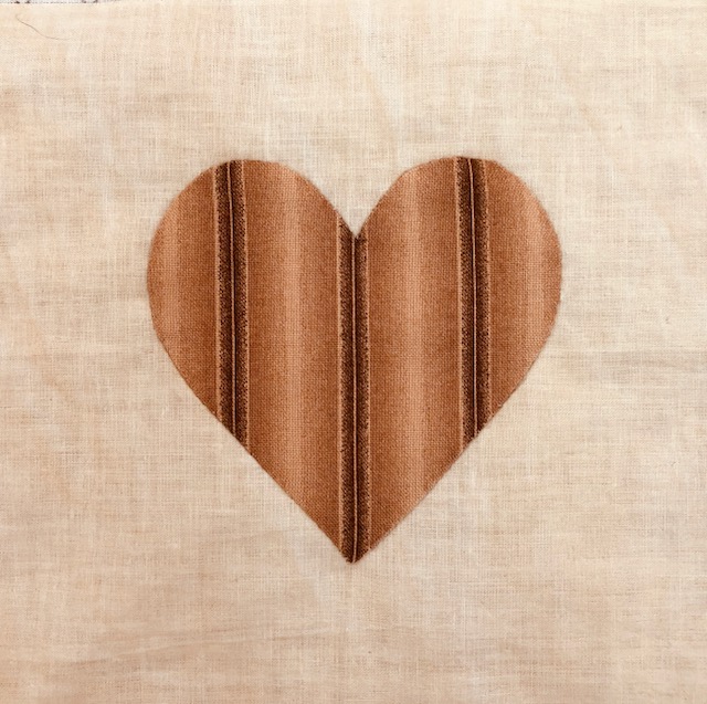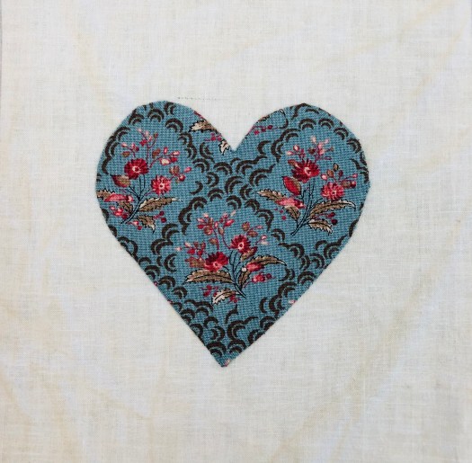 I applique each heart on the grid as it makes it much easier to handle a 6″ block with a 3 1/2″ heart!