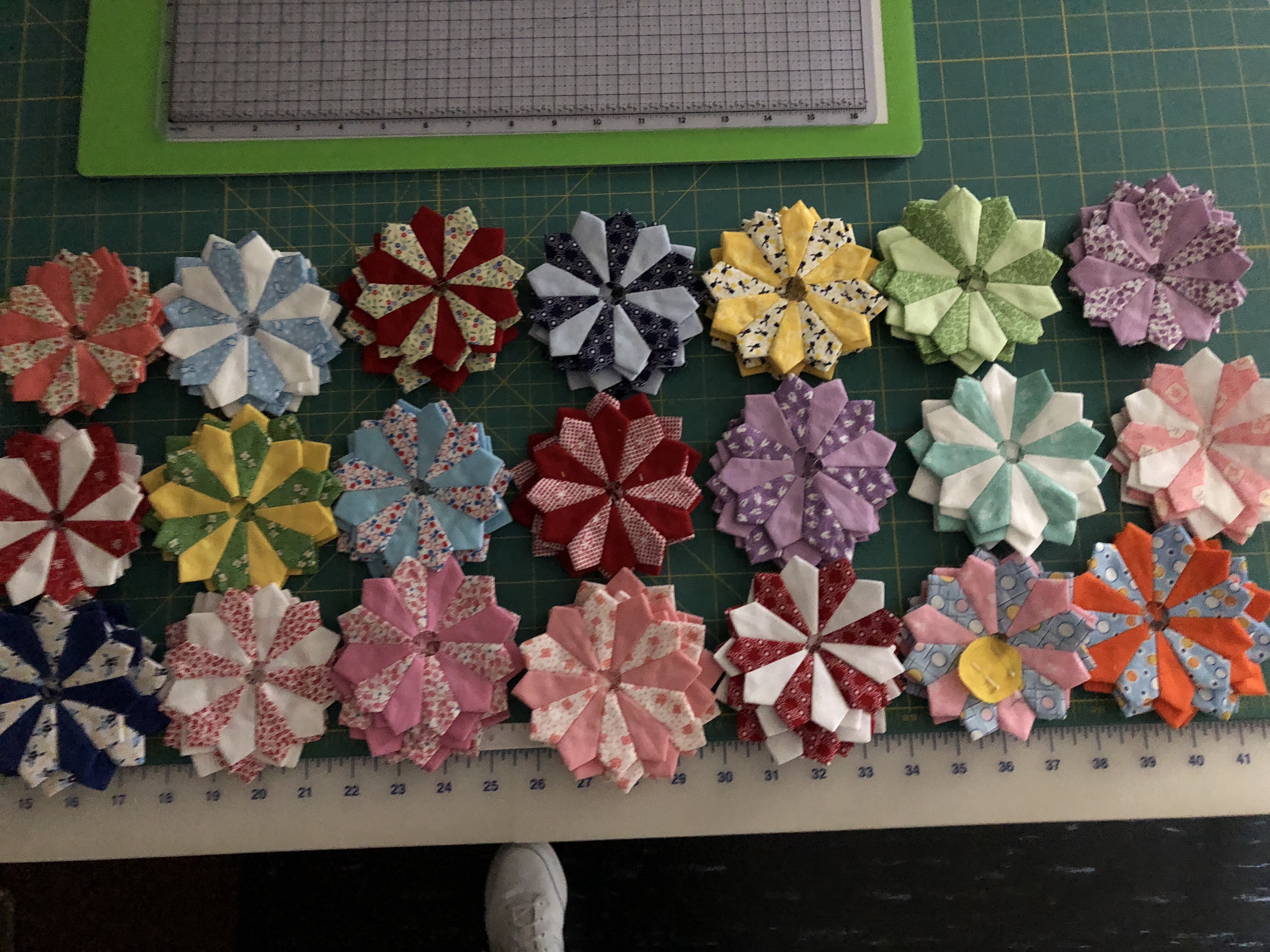 Today was the most peaceful day I have had in years! It was wonderful, no drama, no problems, no interruptions, and progress on Dresden Plates. I have also been working on my daily hearts projects.