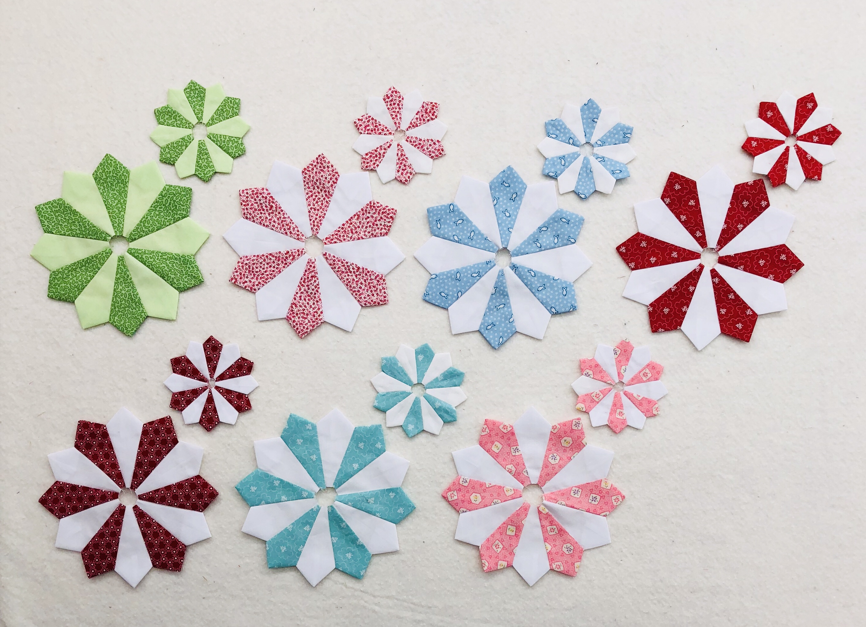Large Dresden Plates for Dresden HeavenMy first 12 Hearts for A Heart a Day in May!